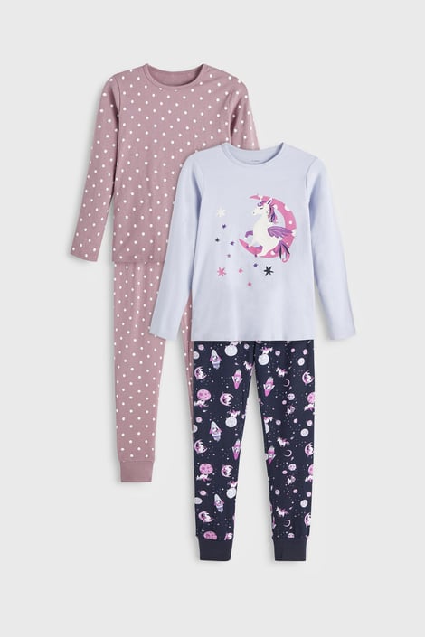Pachetul conține două pijamale cu design diferit, vezi foto.