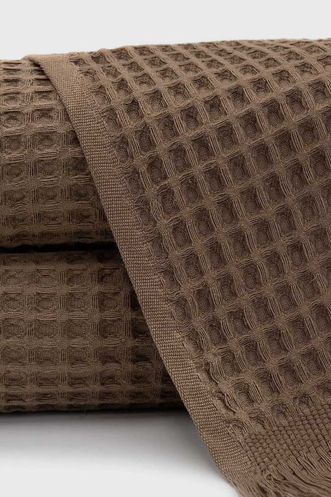 Set practic cu 2 prosoape Sofia cu structură tip vafă, model monocrom. Marginea inferioară este finisată cu franjuri. Din bumbac 100%.