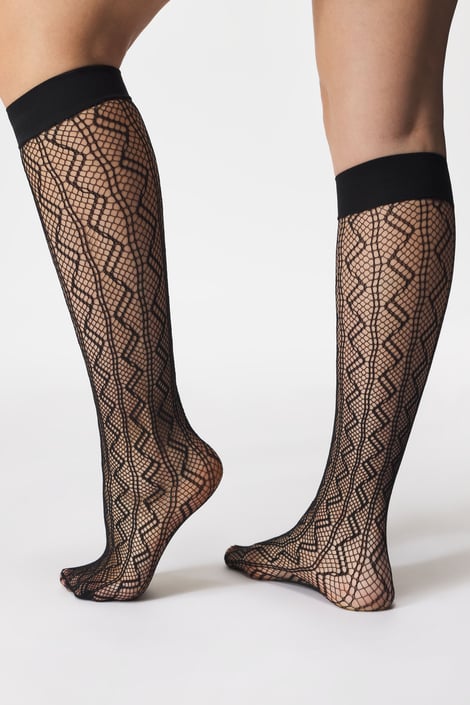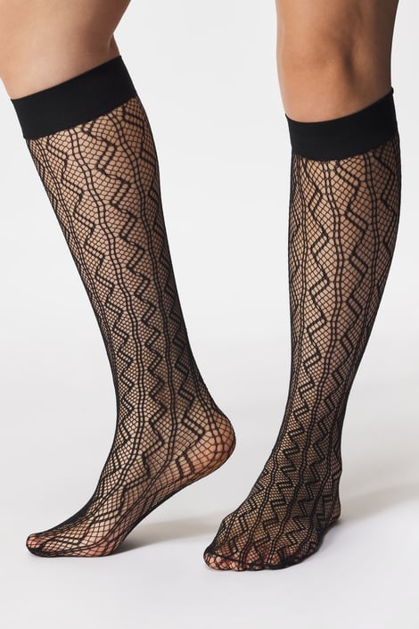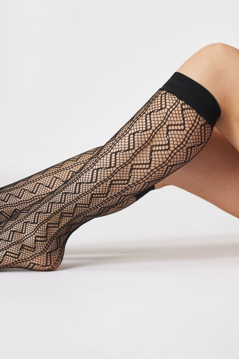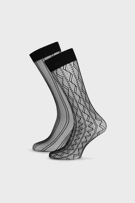 Șosete înalte din plasă Zigzago cu dungi decorative. Într-un set practic cu două perechi.