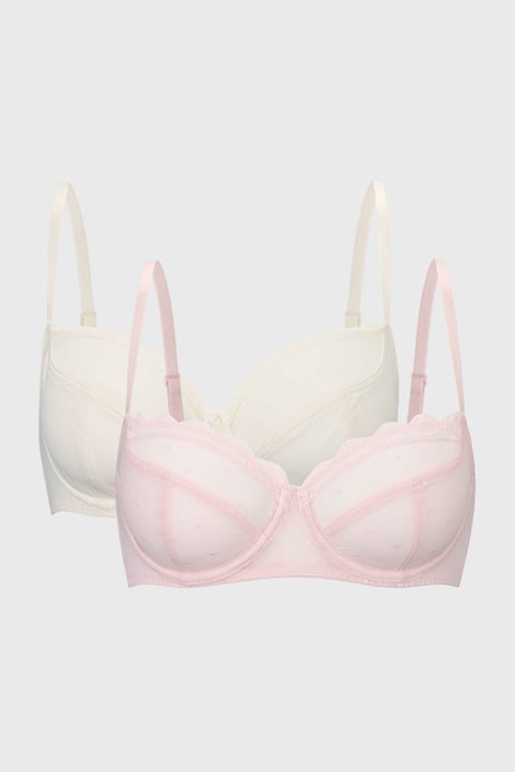 Setul de două sutiene Jaylani va oferi un sprijin blând sânilor mari. Cupele neîntărite sunt fabricate din materiale moi care sunt la fel de ușoare ca o pânză de păianjen pe corp. Pentru un decolteu natural frumos.