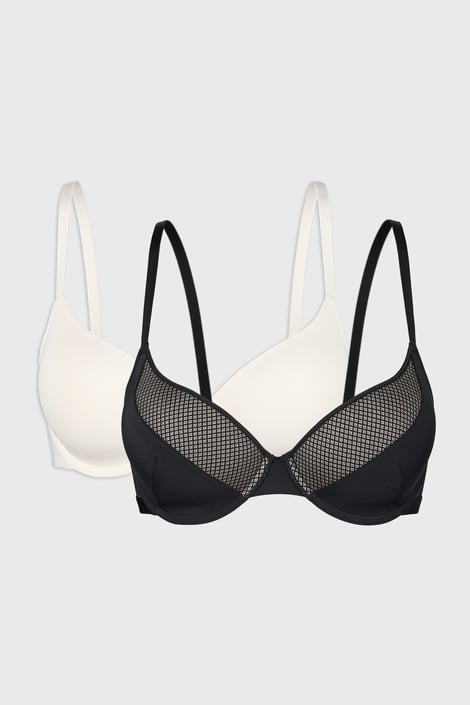 Set cu două sutiene întărite Luca în design negru și crem. Cupele ușor întărite au balene cusute și asigură susținerea necesară.