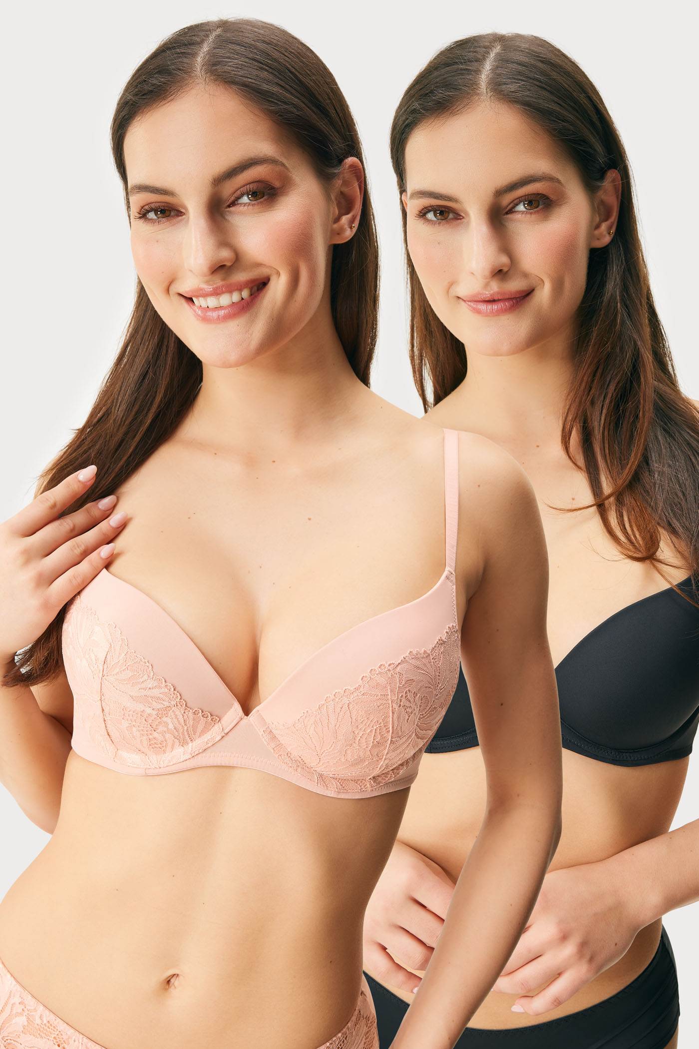 Sutienul Nadia Push-Up Plunge îți va modela decolteul într-un mod cu adevărat fermecător. Cupele Push-Up sunt moi, întărite, și ridică sânii. Centrul jos îi lasă să iasă în evidență în decolteu. Un sutien este complet neted, celălalt este decorat cu dantelă în față.
