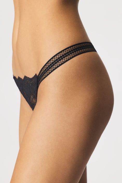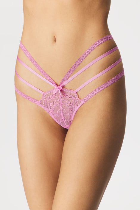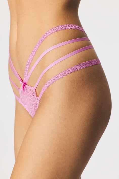 Chiloți Karin cu o croială tanga măgulitoare care îți va rotunji fundul. Confecționați din dantelă moale și bretele fanteziste.