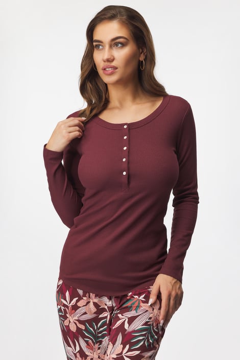 Bluză de pijama damă Truffle cu structură fină în dungi. Cu adaos de viscoză.