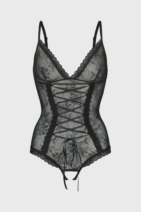 Body senzual Obsessive Slevika pentru momentele tale de plăcere. Combinația seducătoare de dantelă și tul dezvelește corpul feminin, iar zona inghinală decupată invită la jocuri amoroase.