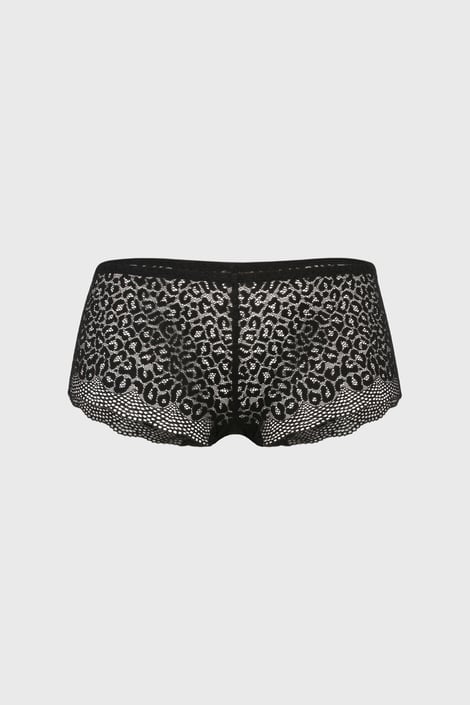 Boxeri Jaguar din dantelă ușoară cu motive animal print. Cusătura verticală de pe spate modelează frumos formele. Model creat de specialiștii Astratex.