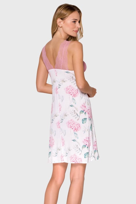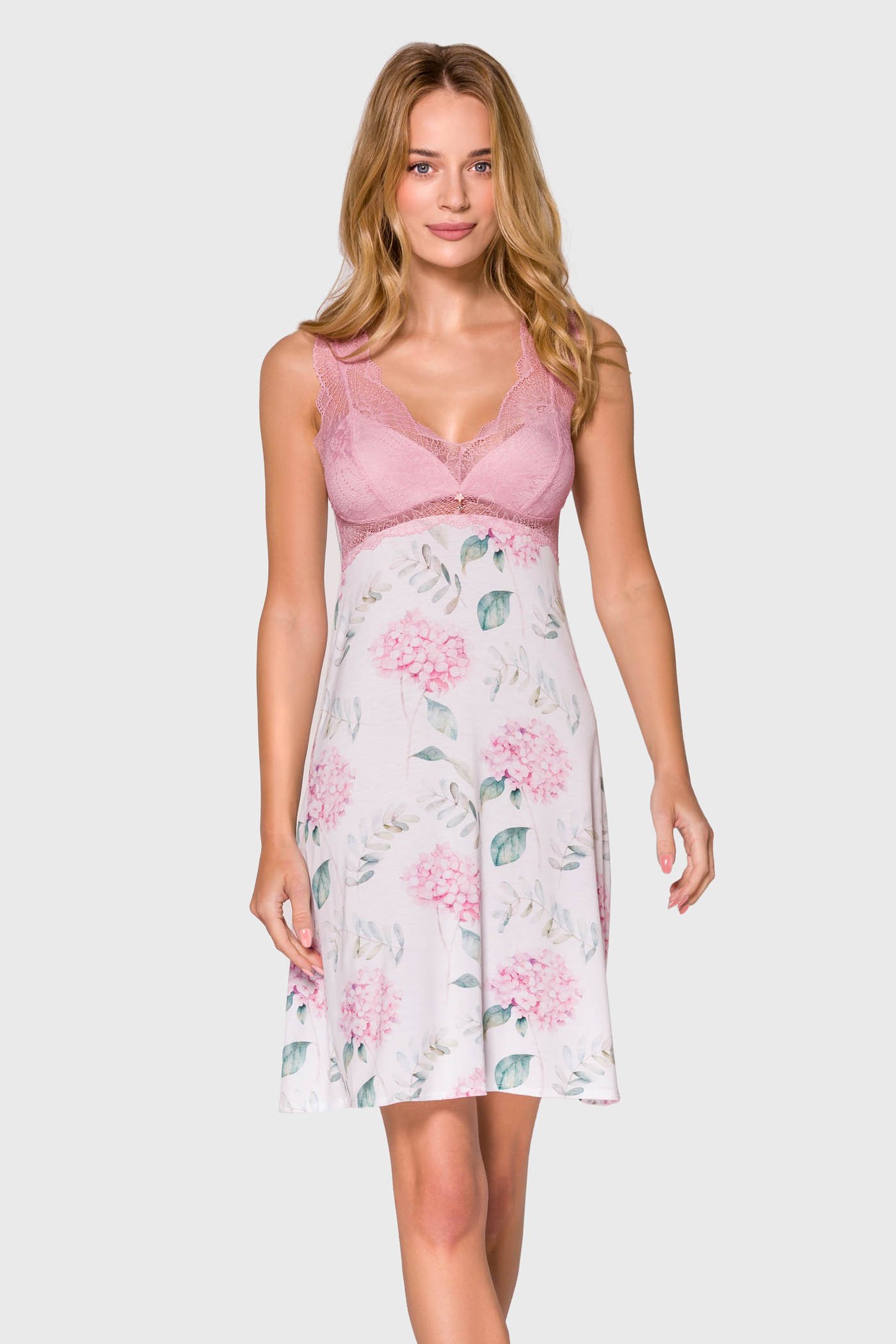 Dacă ești o iubitoare a pieselor din viscoză, cămașa de noapte Montreal nu trebuie să lipsească din dulapul tău. Tricotul moale se așază frumos pe corp, iar decolteul și umerii sunt ușor acoperiți de dantelă romantică. Cu motive delicate de hortensii.