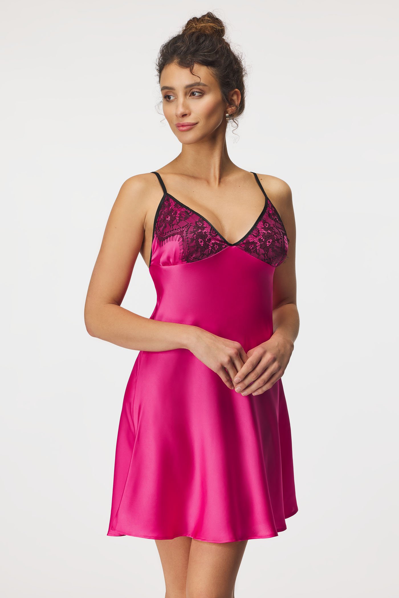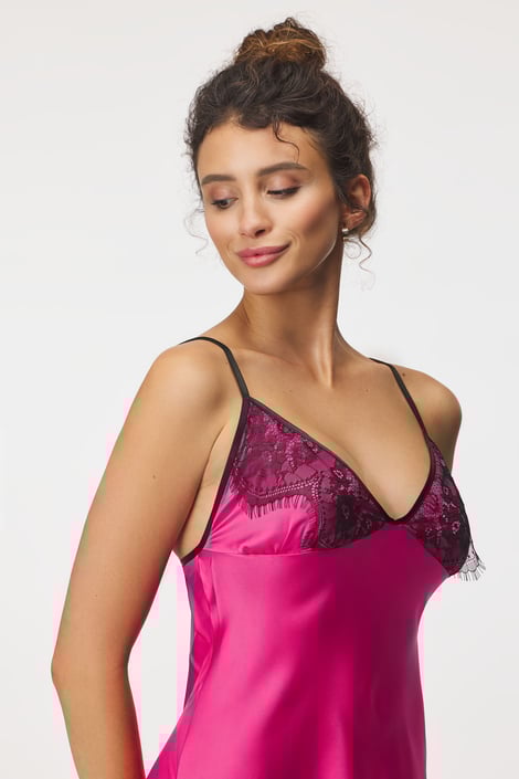 În cămașa de noapte din satin Frivolie te ve simți foarte elegant. Materialul neted se așază frumos pe corp. Cupele neîntărite sunt decorate de dantelă florală.