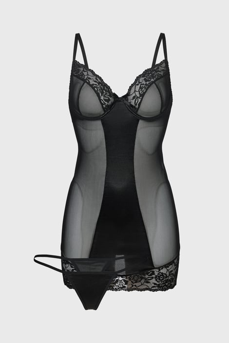 Bucură-te de o piesă senzuală și alege cămașa de noapte Melek din plasă transparentă. Bustul este decorat de dantelă florală bogată.