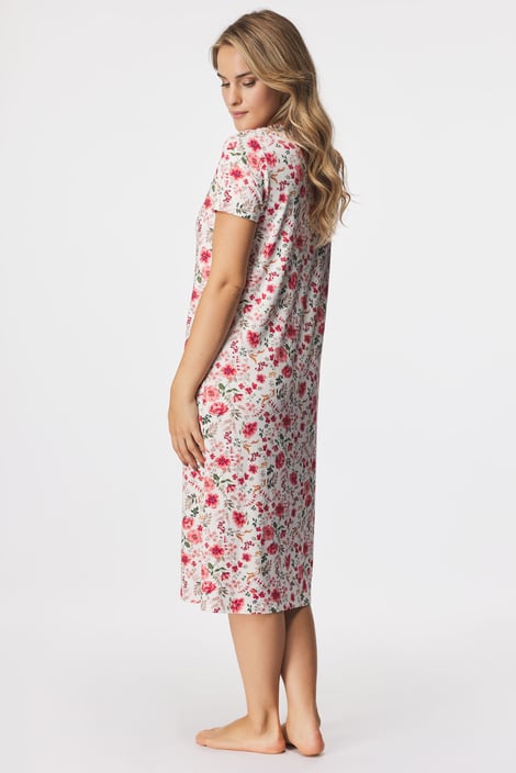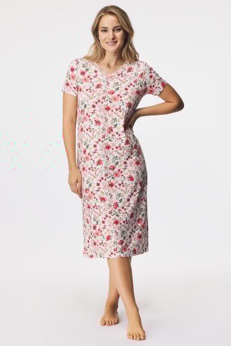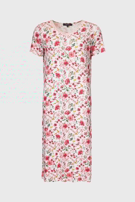 Cămașă de noapte Flower Symphony cu croială confortabilă, model lung. Confortul pe timp de noapte este asigurat de viscoza moale, care se așază grațios peste corp. Decolteul este decorat cu dantelă delicată.