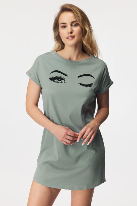 Cămașă de noapte Lead din bumbac plăcut. Partea din față este decorată de o aplicație de catifea.