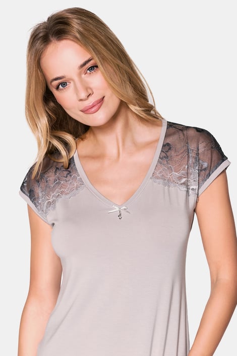 Vei îndrăgi cămașa de noapte New York la prima atingere. Viscoza moale este ușoară pe corp, se îmbină frumos și urmează curbele corpului. Umerii sunt decorați cu dantelă transparentă în nuanțe de gri.