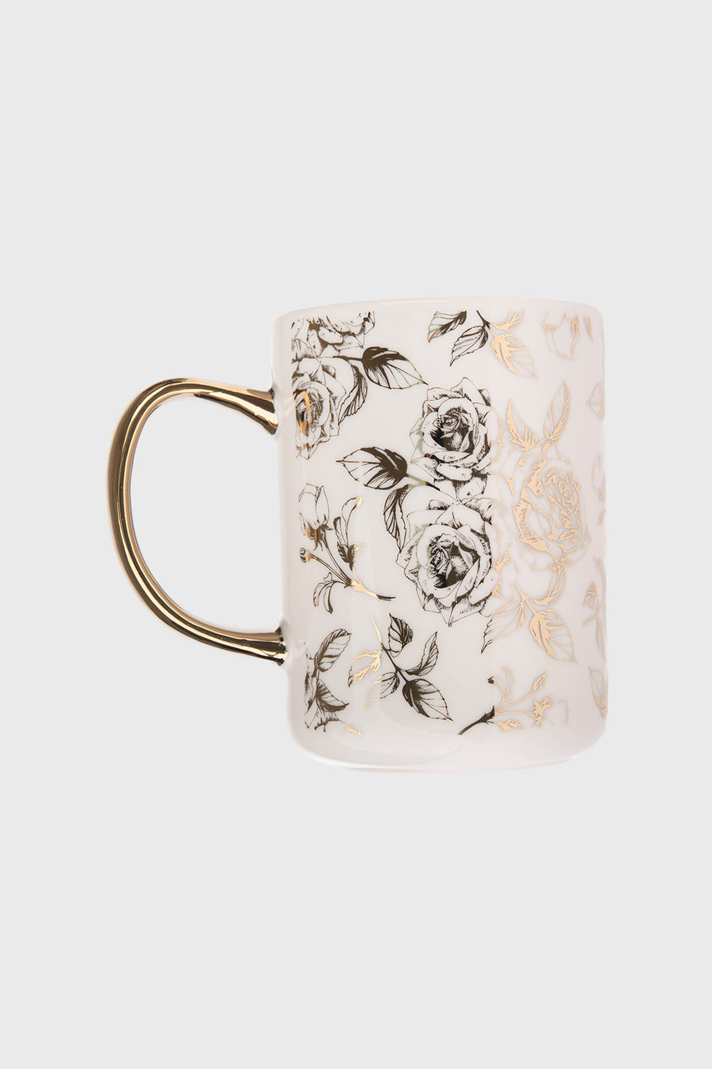 Savurează cafeaua sau ceaiul tău preferat în cana din porțelan Aly. Cu design elegant cu motive aurii.