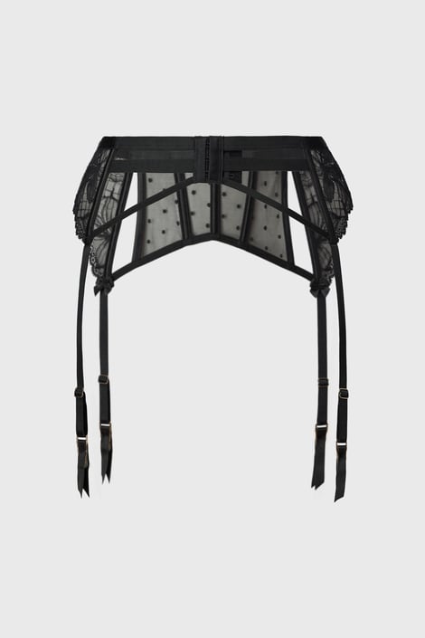 Centură portjartier Lulu dintr-o combinație de tul cu buline și dantelă florală.