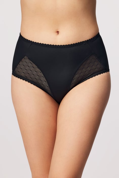 Chilot croială clasică, decorat cu plasa cu buline; talie înaltă.