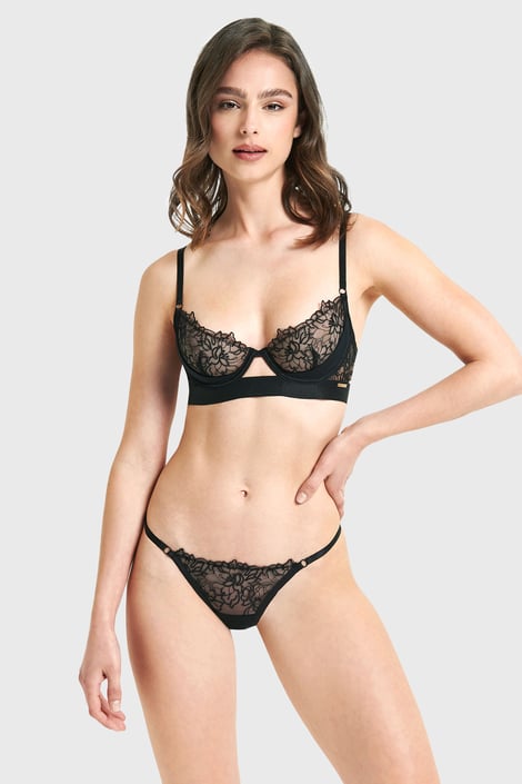Chilot Bluebella Alanna din tul brodat transparent și cu benzi pe părțile laterale. O piesă seducătoare și de efect, în care te vei simți minunat.