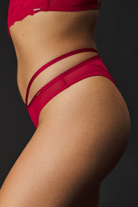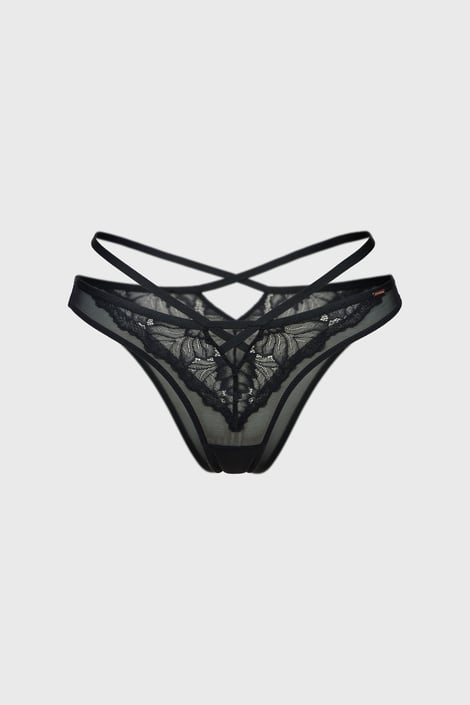Chilot brazilian Esme din tul transparent și dantelă seducătoare. Talia este decorată de benzi strappy.