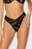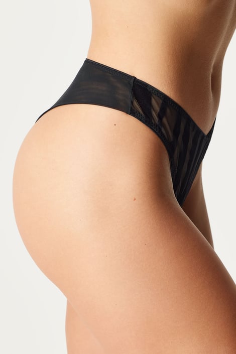 Chilot brazilian Unholy cu decupaj înalt. Plasa fină este decorată de motive catifelate animal print.