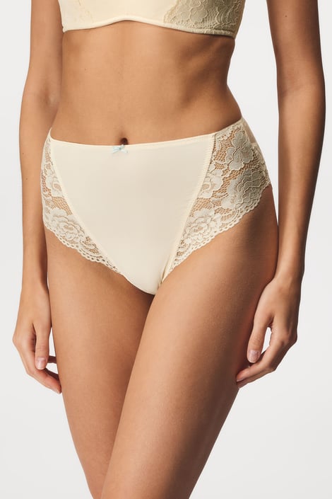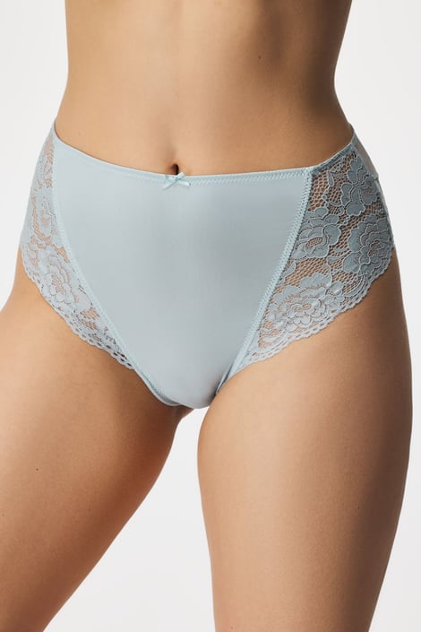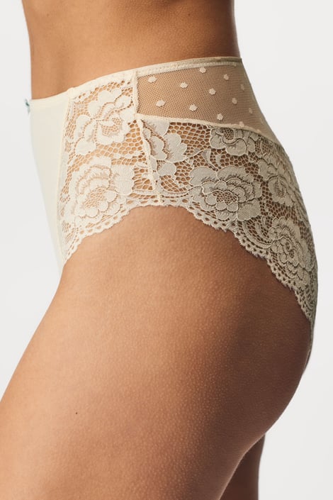 Chilot clasic Amelia cu talie înaltă confortabilă, model care va fi apreciat nu doar de femeile cu forme voluptoase. Din microfibră netedă, dantelă florală și tul decorat cu buline.