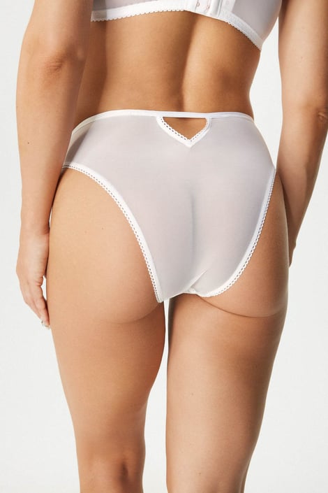 Chilot clasic Darla cu un imprimeu romantic albastru pe partea din față, confecționat din microfibră. Talia ridicată flatează abdomenul și este decorată cu dantelă bogată și benzi strappy. Fesele sunt acoperite cu plasă fină, cu un decupaj spectaculos.