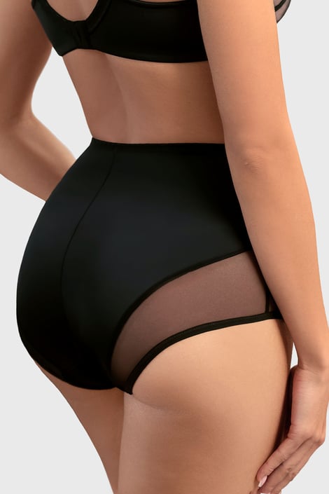 Chilot clasic Thea cu talie înaltă, care acoperă și întărește burtica. Modelul negru elegant este decorat de benzi contrastante.