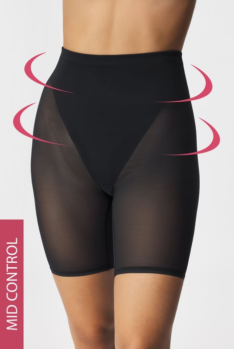 Chilot modelator Celina, model lung, care protejează coapsele de frecări neplăcute. Efectul modelator netezește ușor contururile corpului.