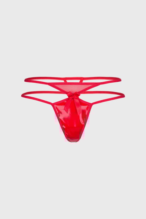 Tanga erotic Emanuja din tul transparent combinat cu bretele. Piesa ideală pentru jocul amoros în doi.
