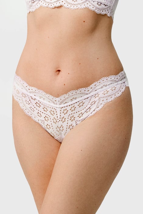 Chilot tanga Mayra pentru forme frumos modelate. Din dantelă bogată și microfibră netedă.