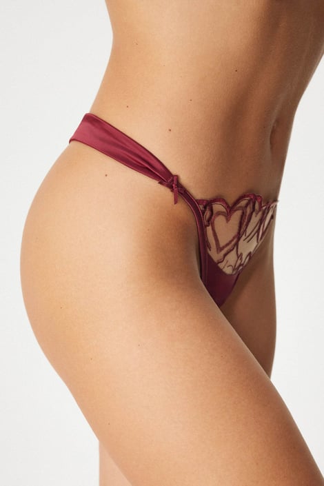 Chilot tanga Olivia pentru fese mai rotunde. Satin strălucitor decorat cu plasă brodată pe partea din față.