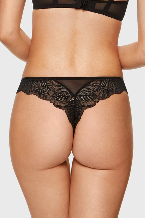 Chilot tanga Veneto din dantelă neagră elegantă. Model ușor transparent!
