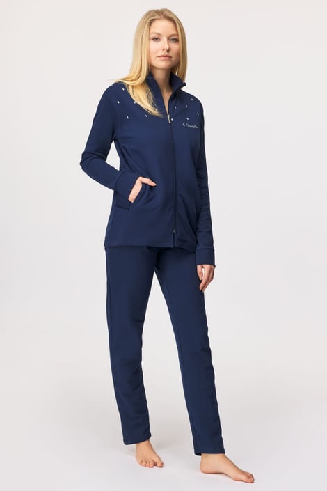 Compleu monocrom de damă Lemfa este alegerea ideală pentru casă și petrecerea timpului liber. Tricotul plăcut va avea grijă de confortul tău. Hanoracul cu închidere cu fermoar este decorat cu picături strălucitoare.