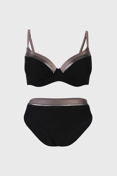 Costum de baie din două piese pentru femei Braga Exclusive cu cupe întărite și balene clasice și laterale. Detalii din material cu efect metalic în zona decolteului. Slip clasic.