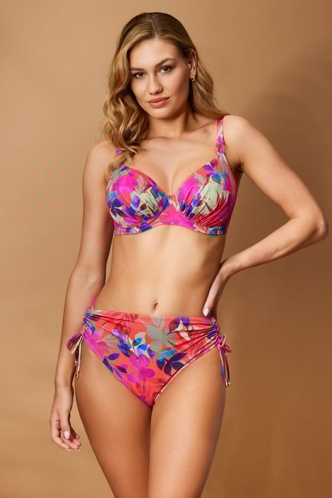 Costumul de baie din două piese Fantasie Swim Playa del Carmen îmbracă formele luxuriante într-un model tropical colorat. Cupele neîntărite din material elastic se adaptează cu ușurință la sâni, îi țin aproape de centru, balenele oferă suportul necesar. Slipul cu talie înaltă va acoperi zonele cu probleme, iar drapajul ușor din laterale măgulește vizual.