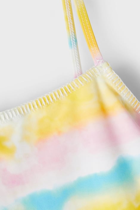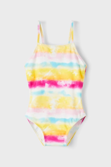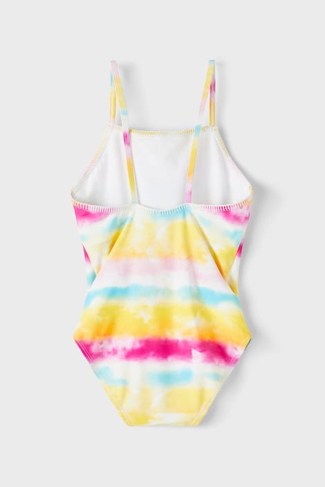 Costum de baie întreg pentru fete name it Zambra în design curcubeu. Materialul neted este căptușit cu un strat fin de material, pentru un plus de confort.
