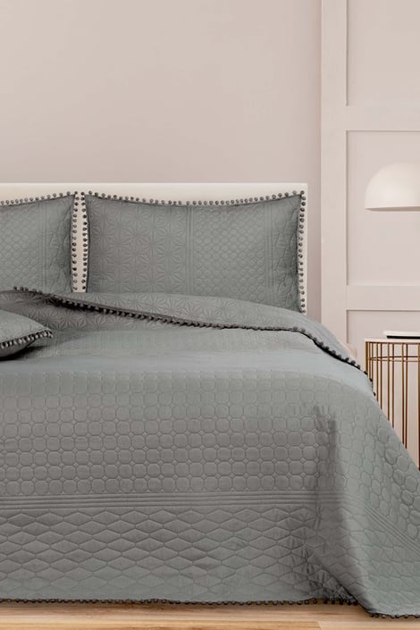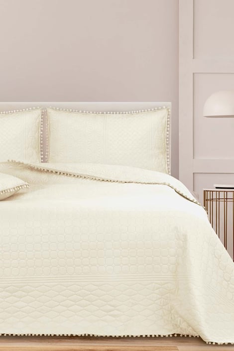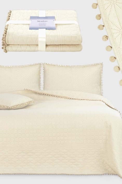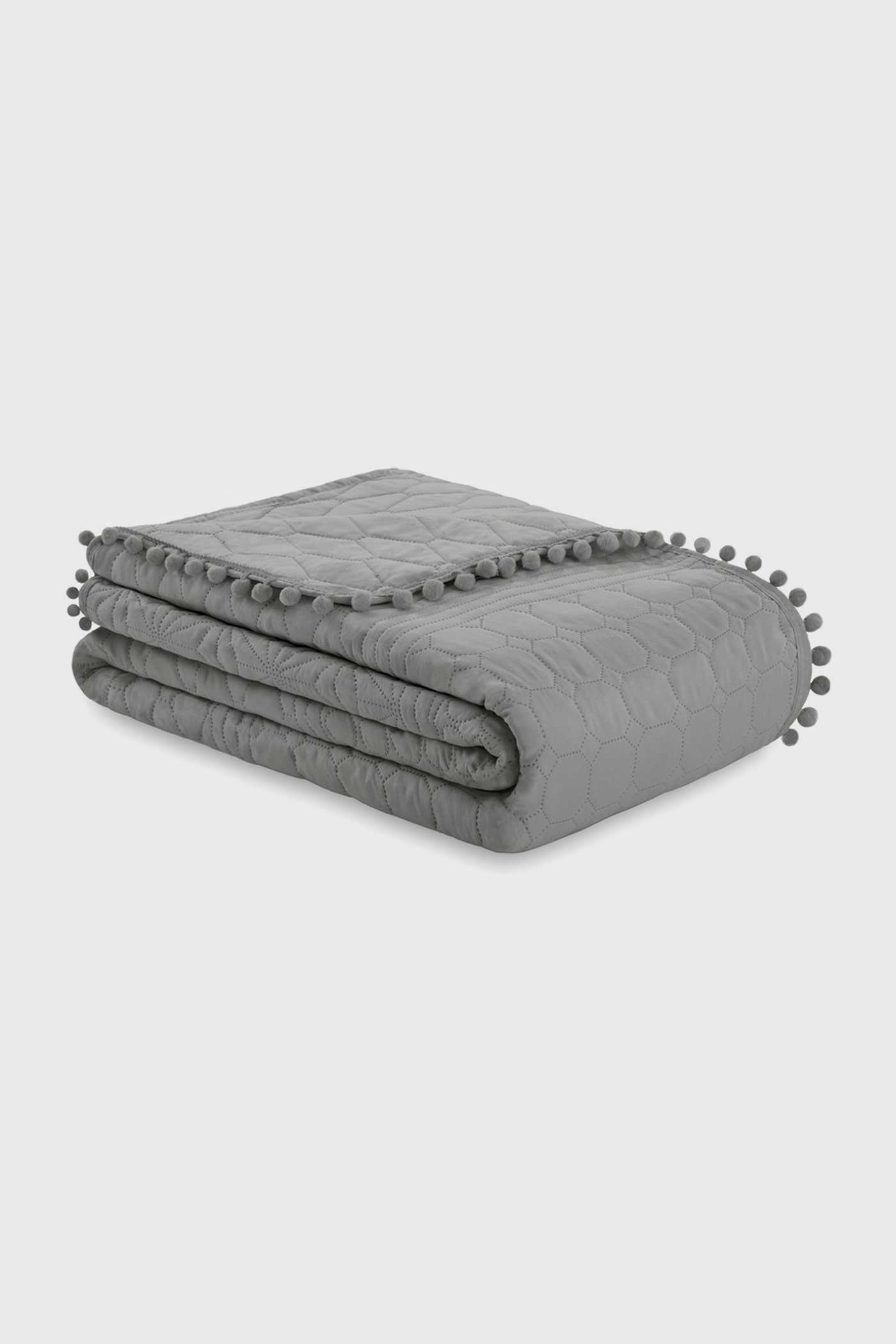 Cuvertura practică Meadore în design monocrom poate fi folosită pe pat sau pe canapeaua preferată. Cu mici ciucuri pe margini.