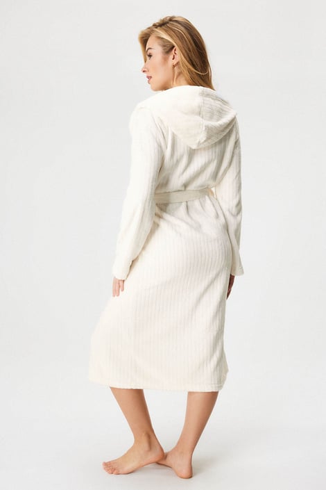 Înfășoară-te în halatul călduros Dionne. Lung, cu glugă și buzunare practice aplicate. Se leagă în talie cu un cordon. Confecționat din micropluș moale cu dungi în relief.
