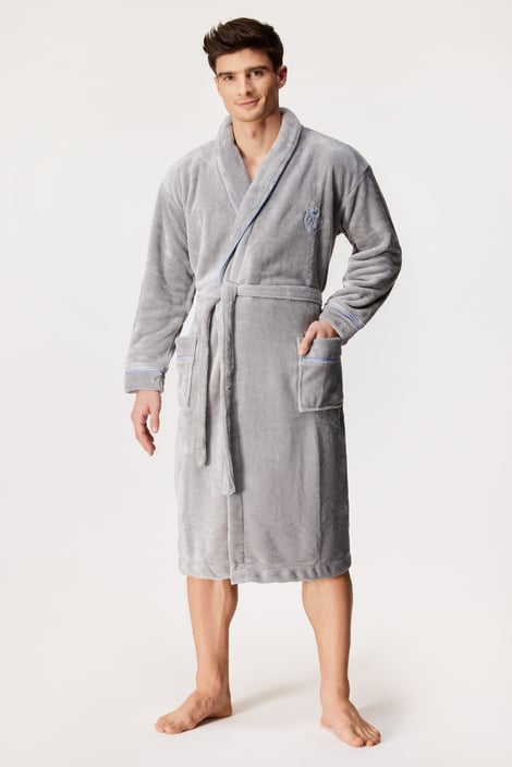 Halatul de baie Luca în croială clasică cu cordon este confecționat din microfleece moale și călduros. Guler cu tiv contrastant şi logo în piept.