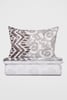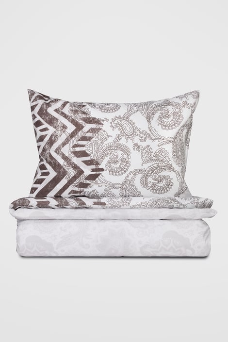 Lenjerie de pat Ceila din bumbac plăcut neted, decorat cu motive ornamentale maro, completate de motive geometrice. Închidere practică cu fermoar.