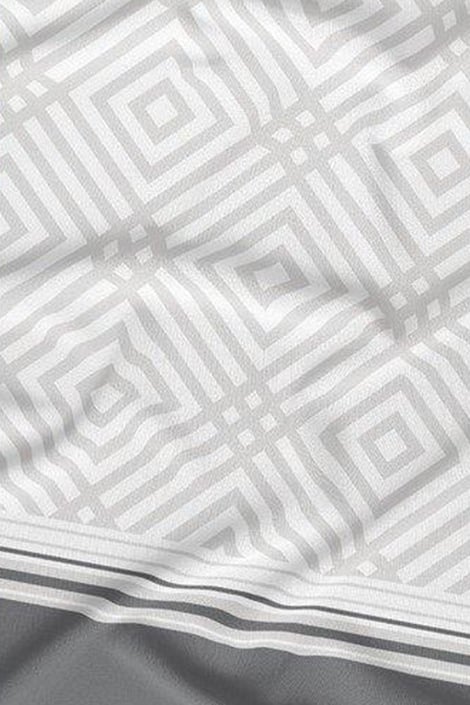 Lenjerie de pat Exclusive Mozaic, din bumbac satinat plăcut. Este decorată cu motive geometrice în alb și gri.