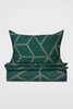 Dacă preferi lenjeria de pat din bumbac neted, încearcă lenjeria de pat Geometry. Baza verde smarald este decorată cu motive geometrice bej. Datorită închiderii cu fermoar, lenjeria de pat se va schimba foarte ușor.