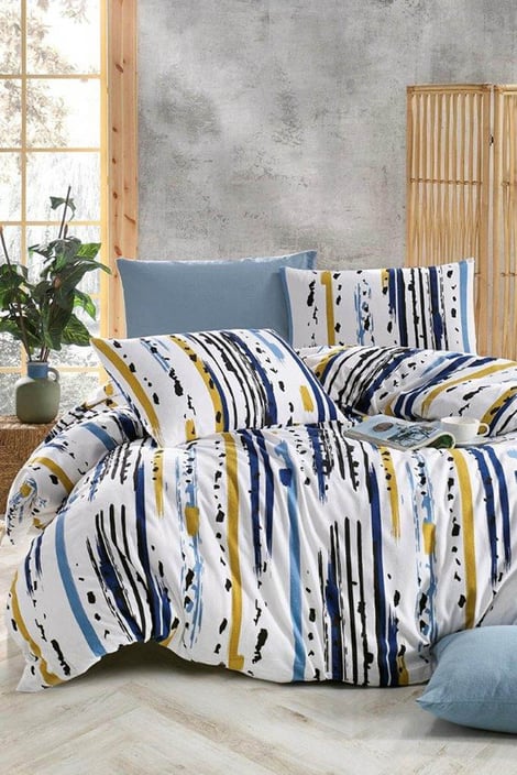 Oferă dormitorului tău un aspect modern și îmbracă pernele și pilota în lenjeria de pat din bumbac Sirus cu design geometric.