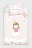 Fiicei tale îi plac basmele? Atunci lenjeria de pat din bumbac Princess este alegerea evidentă pentru ea. Fața de plapumă bej are pe o parte o imagine cu o prințesă și nori, iar cealaltă parte albă este decorată cu nori, lună și stele colorate.