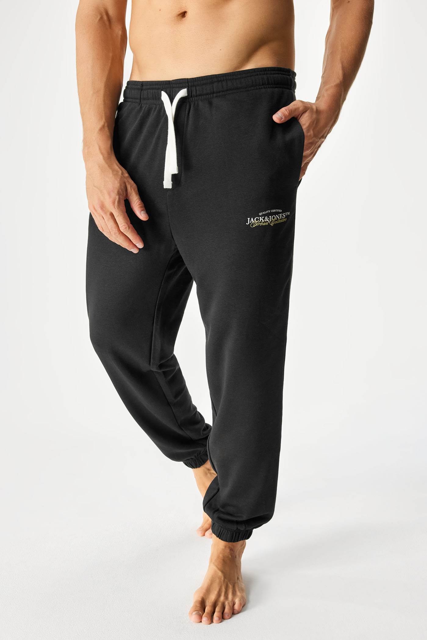Pantalonii de trening JACK AND JONES JPSTKane sunt confecționați dintr-un material tricotat mai gros, pieptănat pe interior. Sunt perfecți pentru zilele mai reci. Cu manșetă elastică. Elasticul din talie este completat de un șnur contrastant.