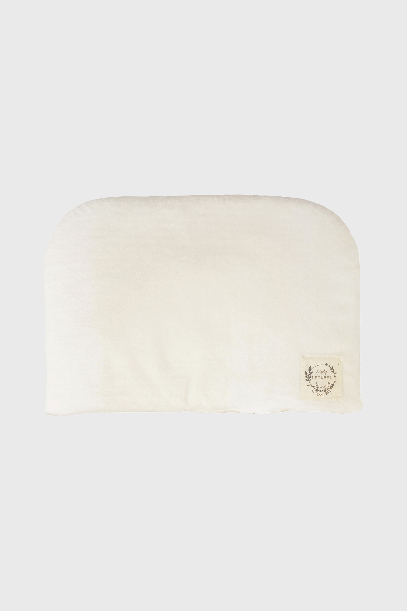 Pernă pentru bebeluşi Josefina. O parte este confecționată din țesătură de bumbac 100% bej, cu structură în dungi, iar cealaltă parte este din microfleece moale.