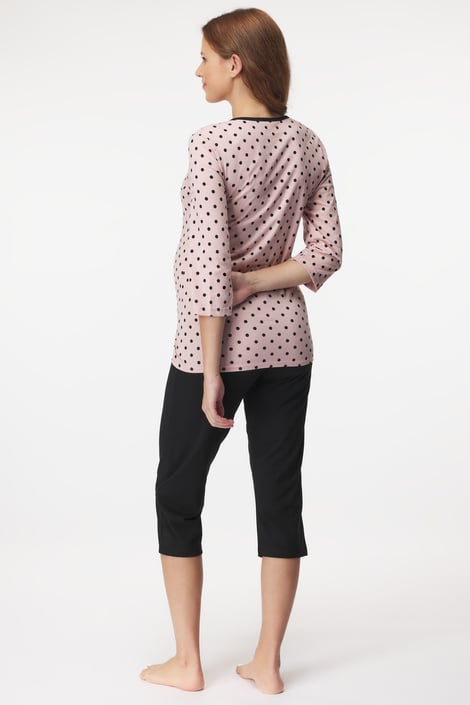 Pijama Marit pentru mămici în devenire și cele care alăptează. Bluza are capse practice, pe care este suficient să le desfaci, pentru a alăpta oricând bebelușul. Cu buline drăguțe.