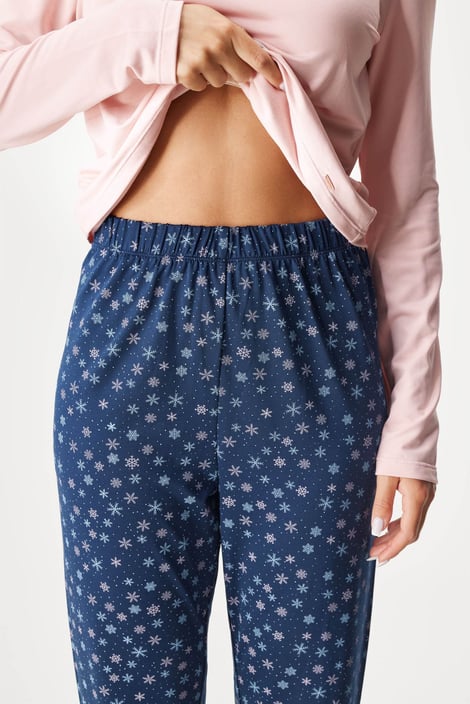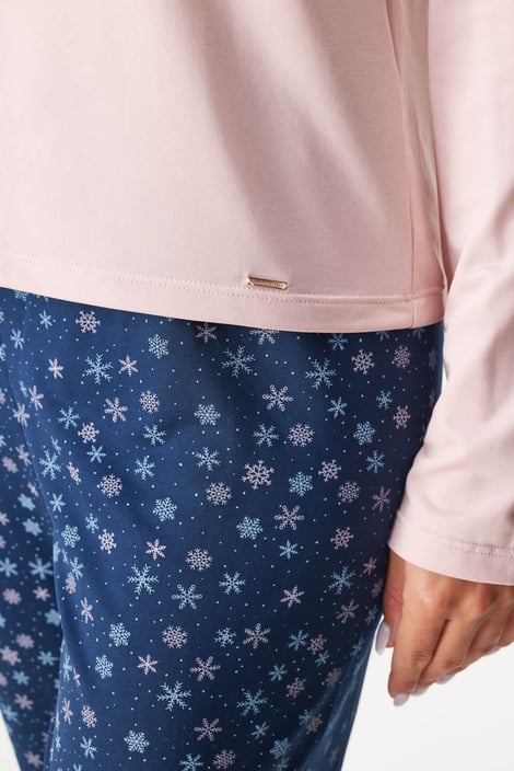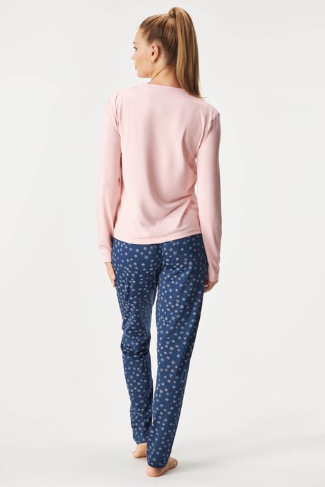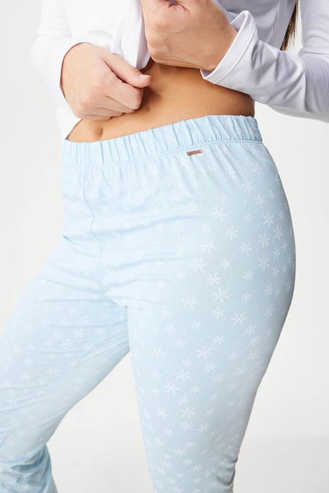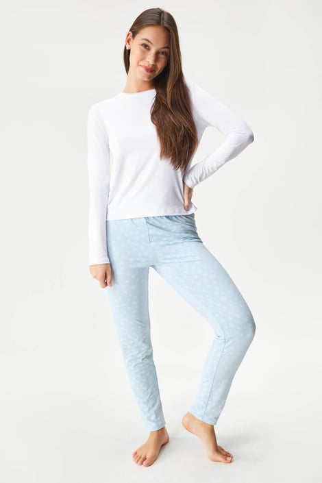 Pijamaua de damă Bianca îți va tine plăcut de cald. Suprafața mterialului pe partea interioară a tricoului și a pantalonilor este acoperită cufire fine care nu te vor lăsa să răcești.