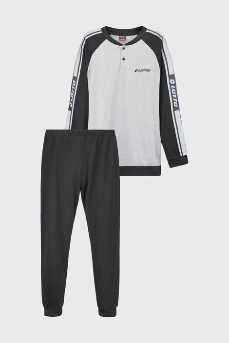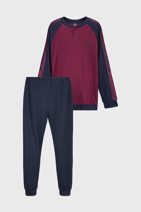 Pijamaua din bumbac Trevino, realizată din tricot moale, are un design sportiv conceput pentru confortul tău în timpul nopții. Bluza este prevăzută cu un decolteu cu nasturi, iar mânecile lungi și pantalonii sunt finisate cu manșete.