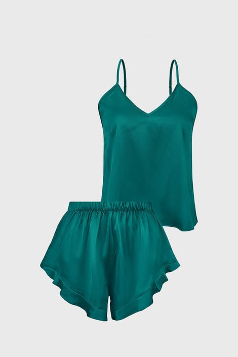 Vei adora pijamaua din satin Satine în noptile fierbinti de vară. Un top simplu cu bretele tip spaghete este completat de pantaloni scurți cu volane pe picioare. Din atelierul specialiștilor Astratex.