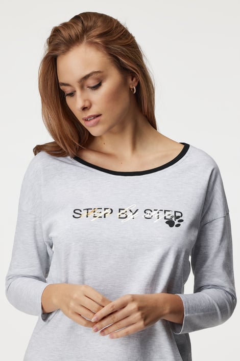 Pijama de damă Step by step te va răsfăța cu bumbac moale. Vei aprecia tricoul cu mâneci mai lungi în nopțile reci de iarnă. Pantalonii lungi cu buzunare sunt excepțional de confortabili.