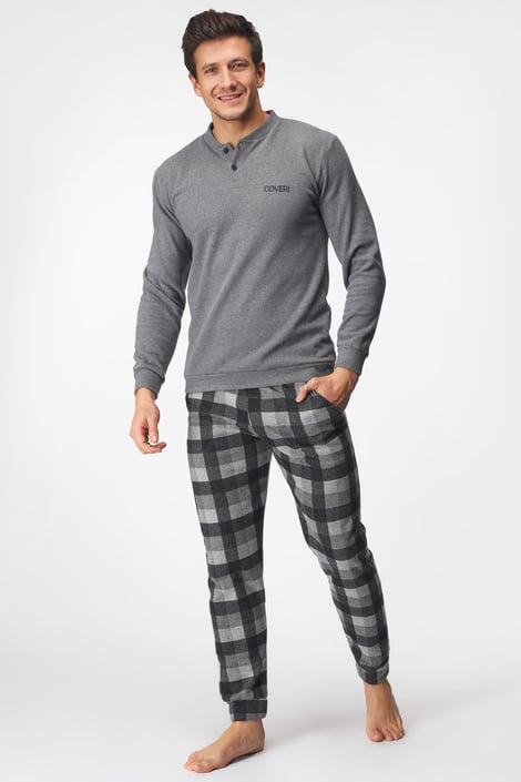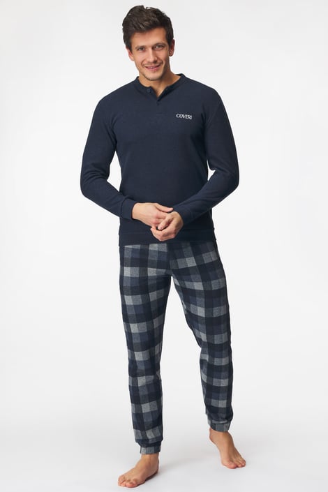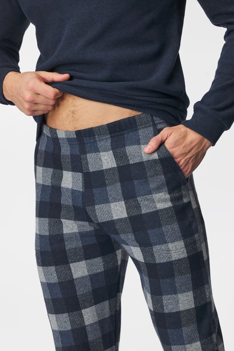 Pijama Emmitt confecționată din bumbac fin, care îți va ține de cald în sezonul rece. Bluza simplă cu mânecă lungă este completată de pantaloni cu motive în carouri.